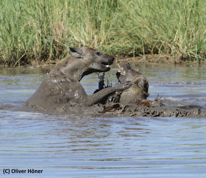 Hyenas love to play in the water